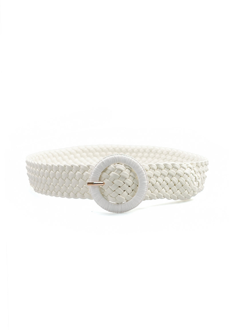 La ceinture tressée à boucle ronde de couleur blanche est un accessoire élégant et texturé qui ajoute une touche de charme rustique et de sophistication moderne à toute tenue. Le...