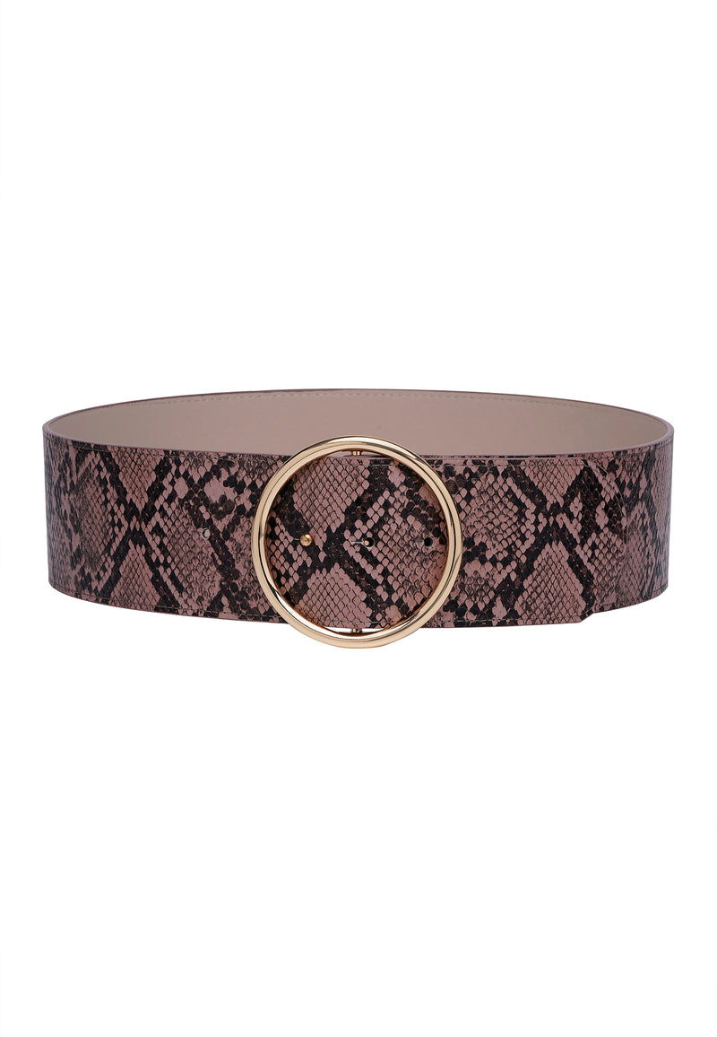 La ceinture à double boucle en imprimé serpent rose est un accessoire sophistiqué et frappant qui combine l'attrait exotique de l'imprimé serpent avec la polyvalence des tons beiges. Le motif...