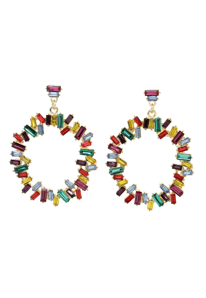 De flerfarvede runde cirklede krystaldråbeøreringe er et fantastisk og unikt tilbehør, der vil tilføje farve og gnistre til ethvert outfit. Disse øreringe er designet med sans for detaljer og har et moderne, legende design, der vil slå hoveder. Bær dem sammen med en simpel sort kjole eller outfit for at skabe en farve og gnistre. Bær dem med et farvestrålende outfit for at komplementere de mange farver i øreringene.