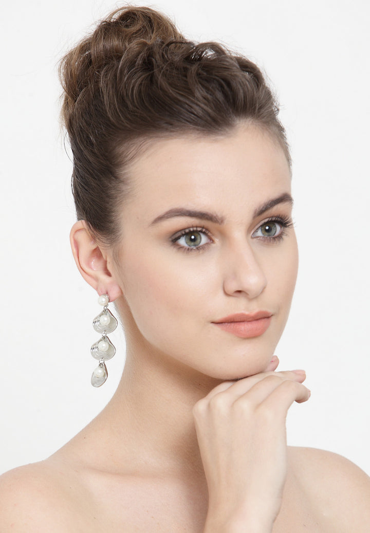 Die Schönheit des Meeres und der Muscheln wird in diesen wunderschönen Perlenohrringen perfekt verkörpert. Der silberne Farbton verstärkt den königlichen Look. Kombinieren Sie es mit einem blauen Kleid für eine Strandparty oder eine Soiree