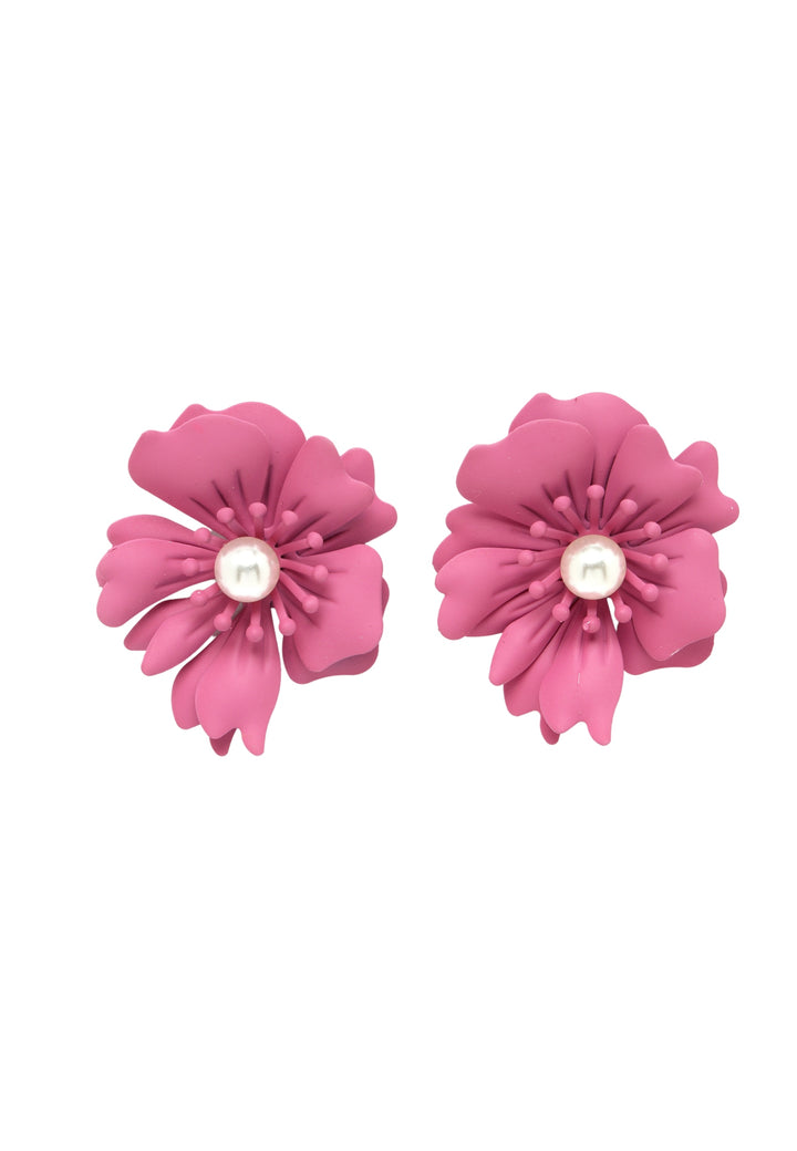Blumenperlen-Ohrstecker in Dunkelrosa