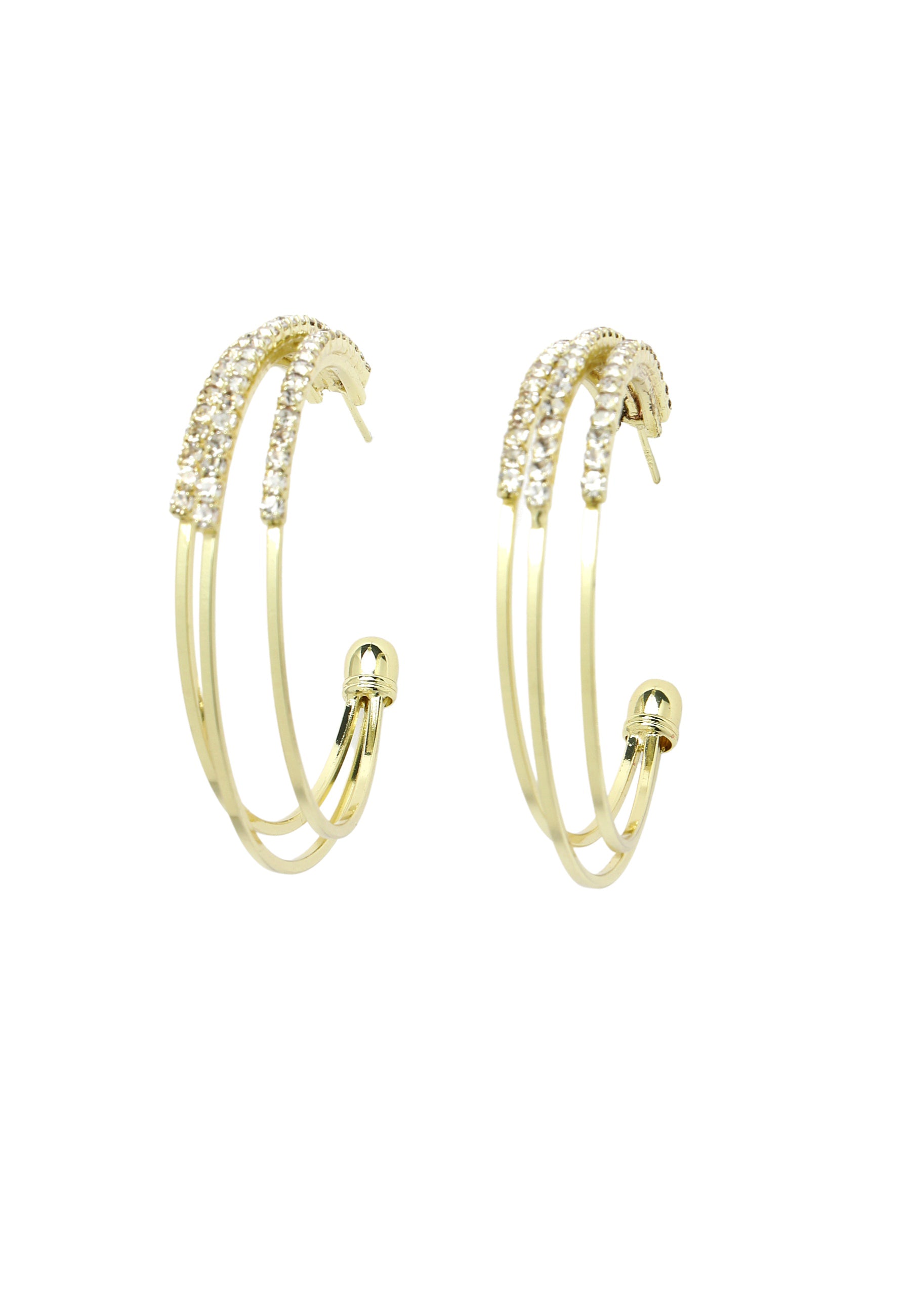 These Gold-Colored C-shaped Crystal Earrings are a simple yet stunning accessory that can lend a dash of refinement to any outfit. These earrings feature a curved C-shaped metal design with sparkling crystals along the outer edge. C shape crystal earrings in gold can be a perfect accessory for a formal occasion, such as a wedding, gala, or business event. They can also complement a more casual outfit, such as a sweater and jeans, and add a touch of sophistication to the overall look.