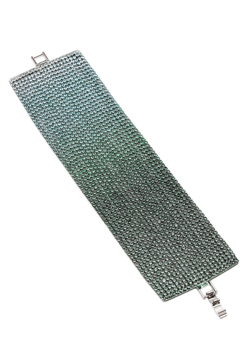 Envuelve tu muñeca con pura energía diva. Este amplio brazalete de cuero está cubierto de cristales azules, creando un brillo azul real que parece sacado directamente de la alfombra roja....