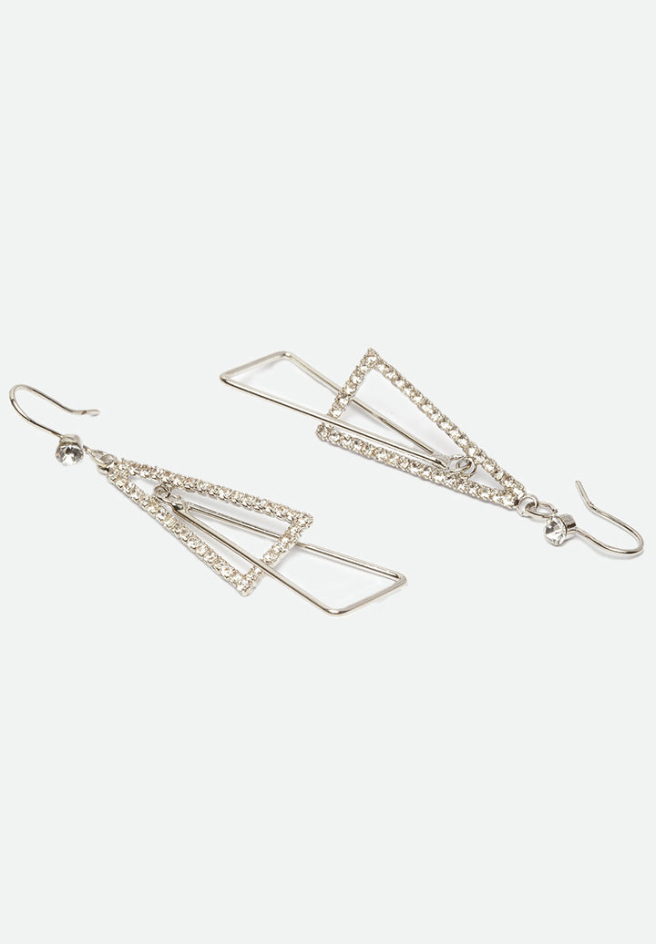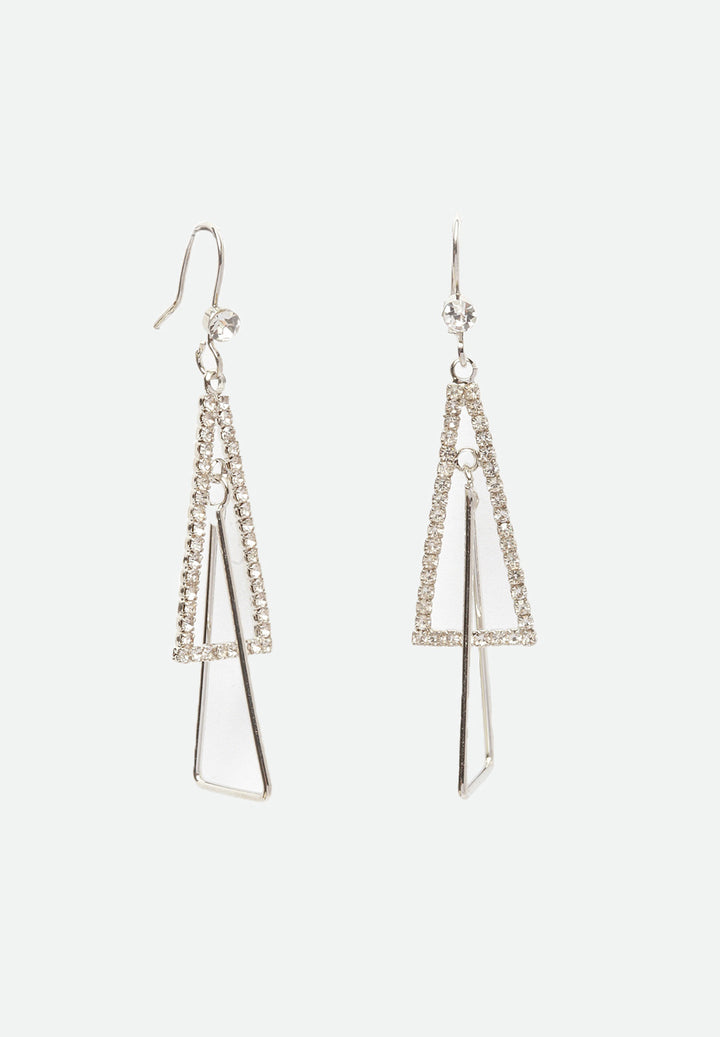 Los pendientes geométricos están hechos con cristales y bañados en rodio. La forma triangular y las capas le dan a la velada un aspecto simétrico y elegante y la cantidad justa de brillo. Esto se puede combinar para un evento formal y brindar una apariencia elegante.