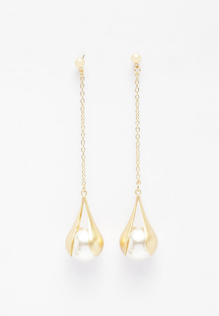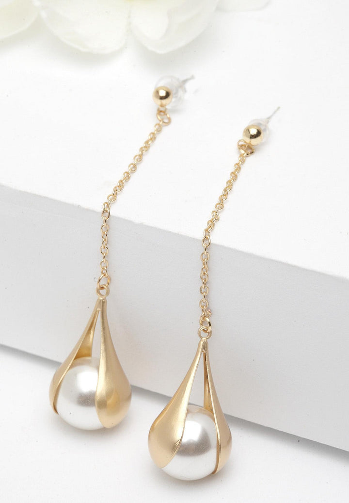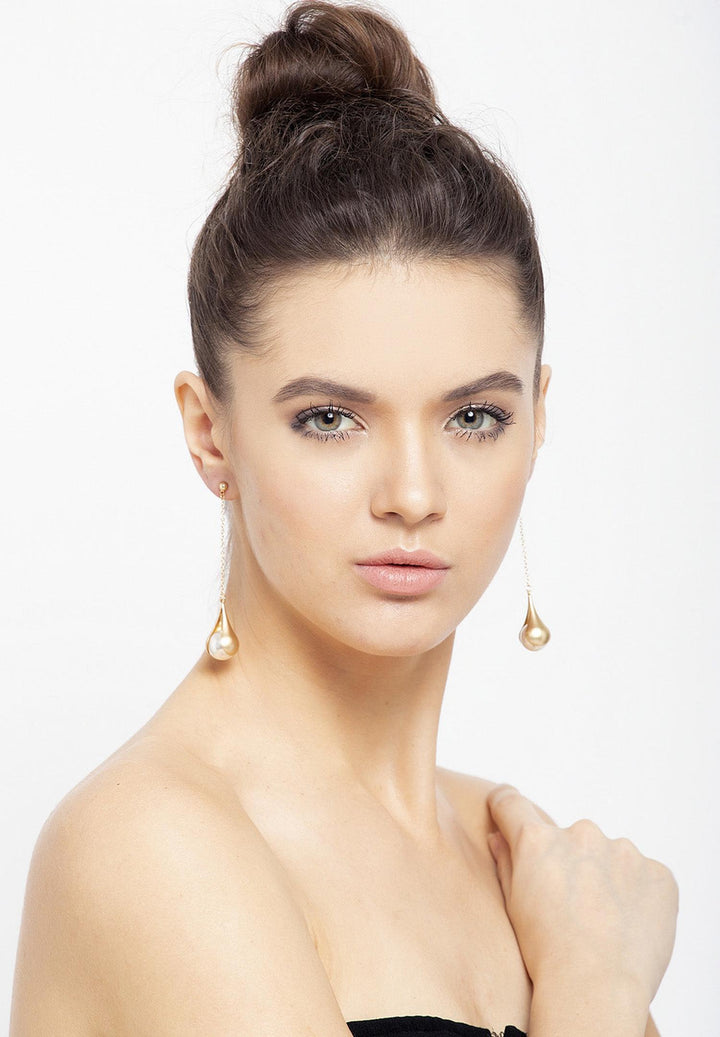 Combina estos aretes chapados en oro con hilos y perlas con tu atuendo formal para el día. Es a la vez simple y sofisticado y perfectamente adecuado para la oficina.
