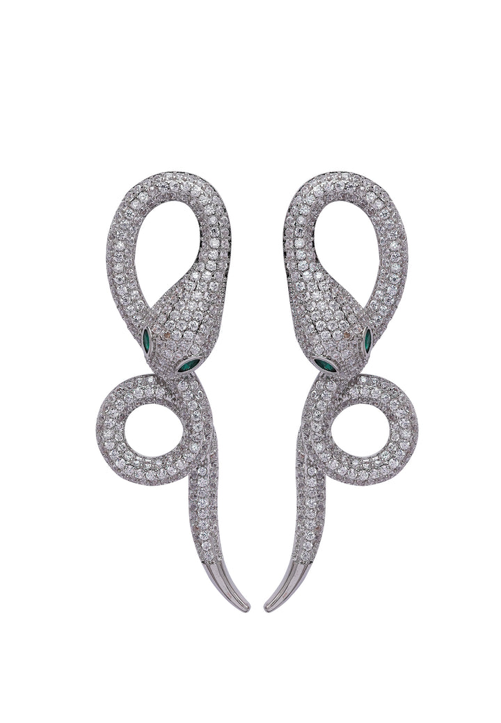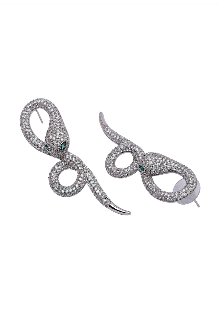 El Cuff de Oreja Serpiente Diva es una pieza llamativa de adorno para la oreja. Estos pendientes son de la colección Diva. El cuerpo de la serpiente está incrustado con brillantes piedras de zirconia cúbica, añadiendo un destello deslumbrante que realza la sensación de lujo de la pieza. A medida que la serpiente se enrolla alrededor de la oreja, su cuerpo se afina en una cola que se enrolla elegantemente, creando una sensación de movimiento y fluidez. El acabado plateado elegante complementa la brillante zirconia cúbica, asegurando que el cuff de oreja sea un accesorio único y llamativo. Ya sea que se use para un evento especial o para añadir un toque de audacia a la vestimenta diaria, seguramente atraerá admiración.
