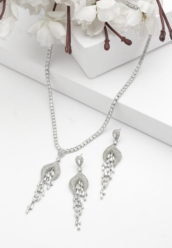 Diva-kokoelman Elegant Chandelier -kaulaketju ja korvakorut -setti on henkeäsalpaava kokonaisuus, joka huokuu ylellisyyttä ja hienostuneisuutta. Tämä setti sisältää tennis-ketjun, joka on koristeltu upealla chandelier-riipuksella, joka on valmistettu kimaltelevasta kuutiollisesta zirkoniasta...