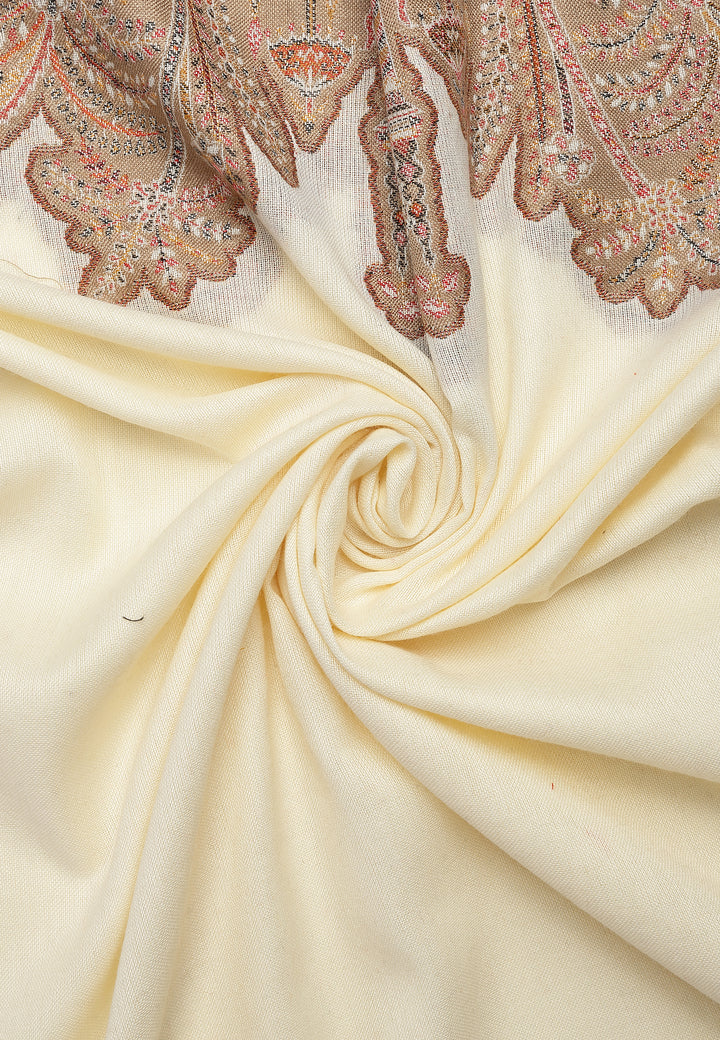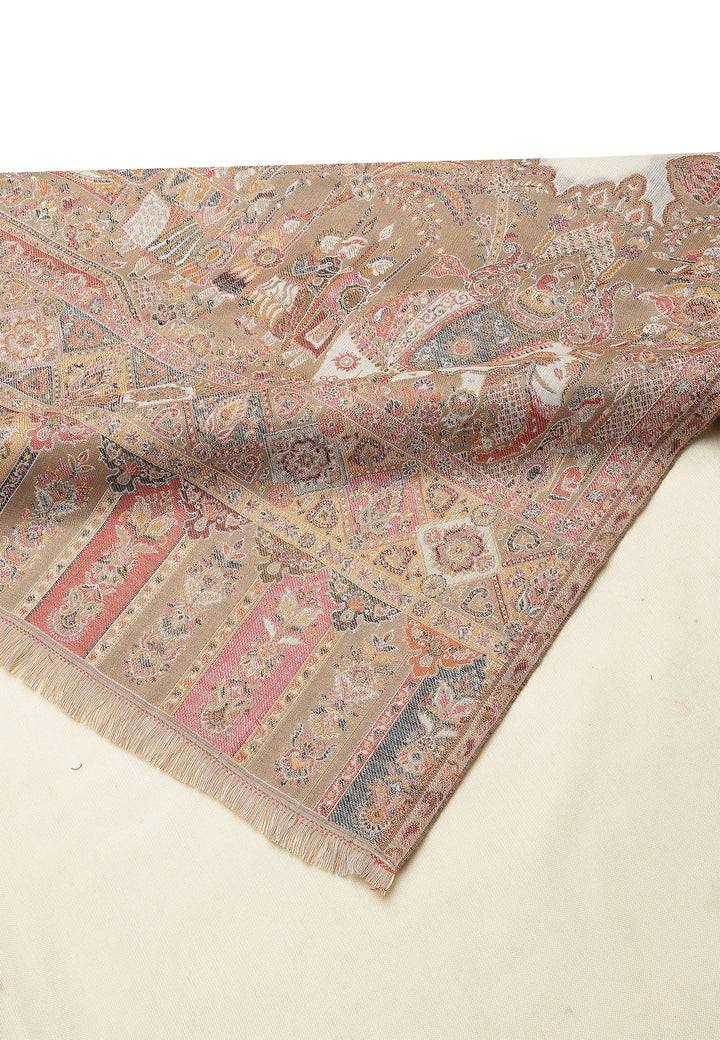 Dearg Jamawar deara, ar fabraic faux pashmina bog agus ealaín thraidisiúnta. Coitianta ó ré na Mughal. Tá an stole traidisiúnta Kashmiri seo le dearadh casta agus cáilíocht.