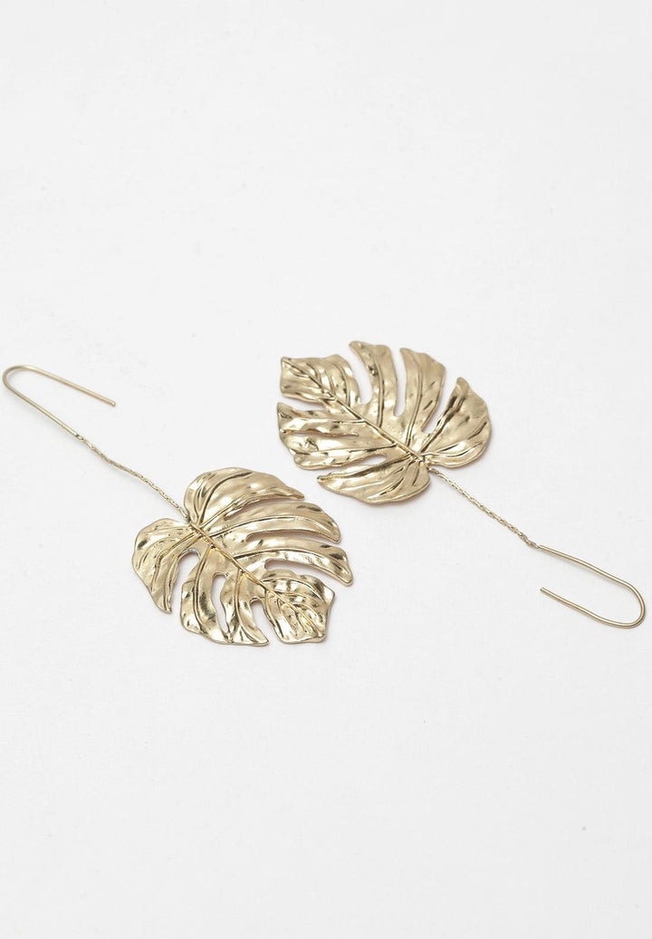 Orecchini a foglia metallica da donna, alla moda. La cosa migliore di questi orecchini minimalisti è che si abbinano a molti abiti e occasioni. La finitura dorata lo rende ancora più artistico.