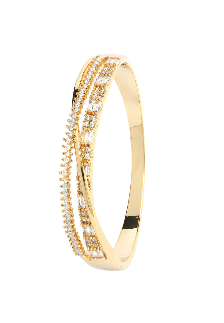 Questo straordinario bracciale emana eleganza con il suo design intrecciato e intricato che unisce oro e diamanti scintillanti. File di pietre radianti brillano in modo straordinario, creando un affascinante gioco di luce e lusso. Bilanciando perfettamente bellezza senza tempo e un tocco contemporaneo, questo pezzo è un'aggiunta elegante a qualsiasi collezione di gioielli, ideale per occasioni speciali o per elevare lo stile quotidiano.
