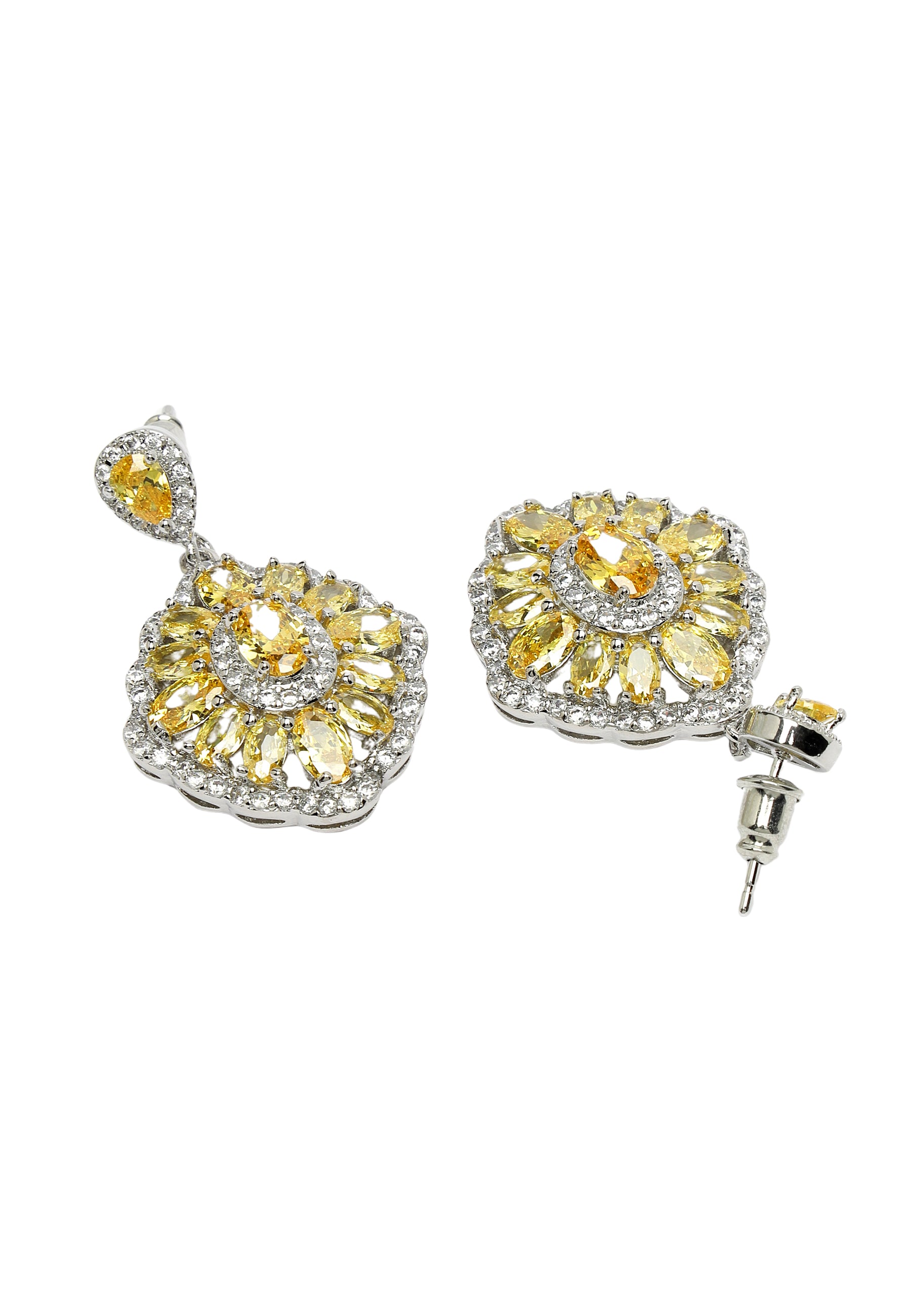 Gli orecchini Statement con zirconi cubici in giallo sono un accessorio radioso e accattivante che emana calore e vivacità. Questi orecchini di tendenza presentano abbaglianti pietre di zirconia cubica in una luminosa tonalità di giallo, disposte in un design intricato e accattivante. Con il loro design audace e il colore radioso, gli orecchini Statement con zirconi cubici in giallo sono l'accessorio perfetto per aggiungere un tocco di glamour e personalità a qualsiasi outfit. Che tu stia partecipando a un evento speciale o semplicemente desideri migliorare il tuo stile quotidiano, questi orecchini abbaglieranno e delizieranno sicuramente.