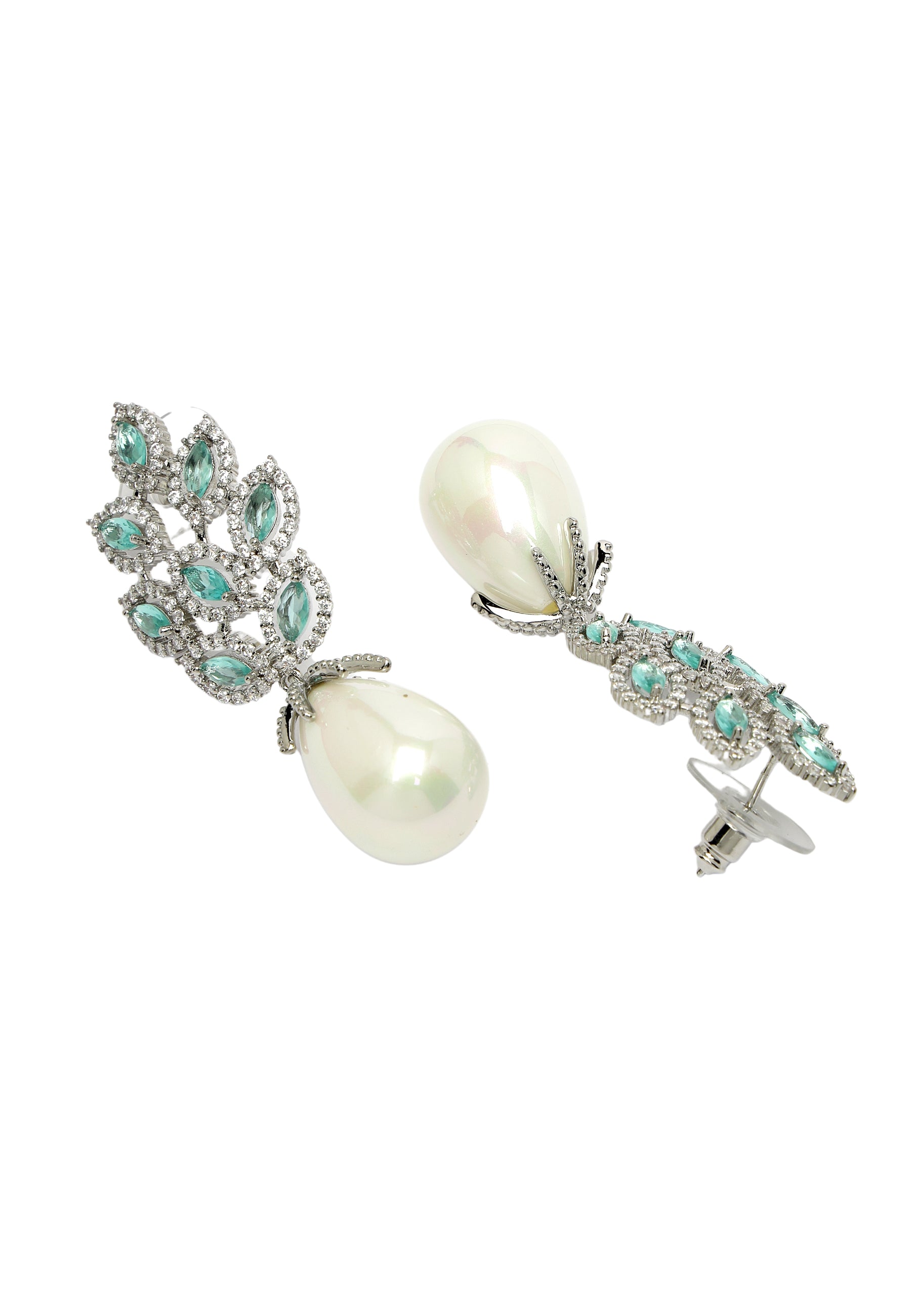 Eleganti orecchini pendenti con zirconi a foglia