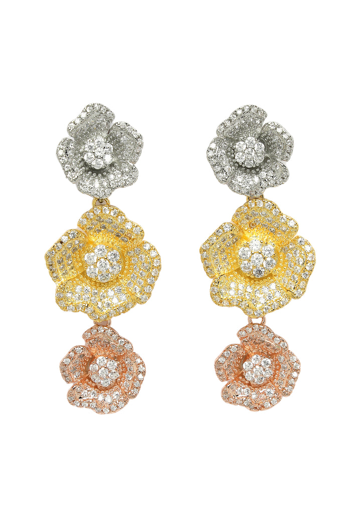 Orecchini pendenti con zirconi a tripla fioritura