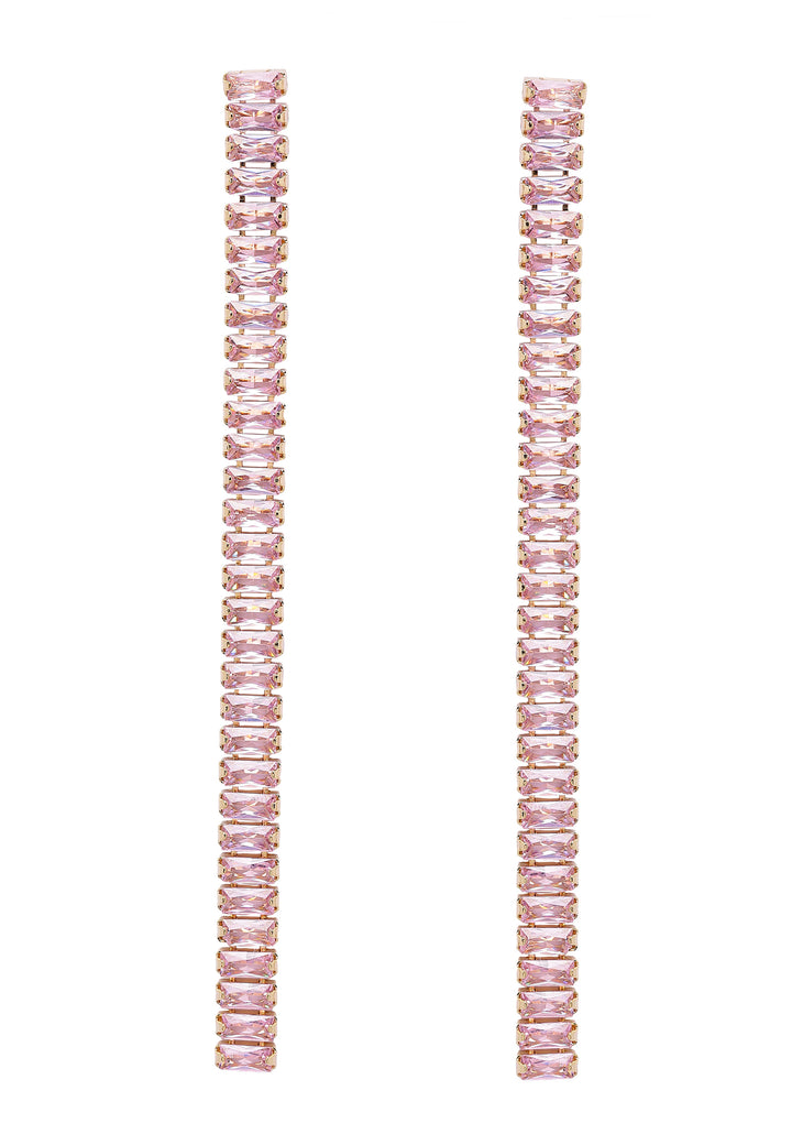 Il lungo design lineare, incrostato con una straordinaria varietà di pietre rosa, crea un aspetto ipnotico e accattivante. Sono perfetti per aggiungere un tocco di glamour e sofisticatezza a qualsiasi outfit.