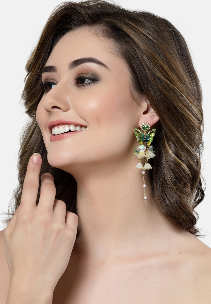 Orecchini pendenti lunghi in cristallo a farfalla
