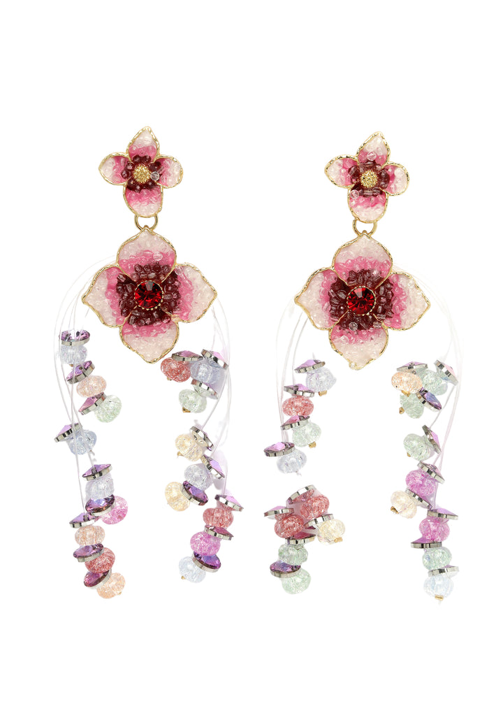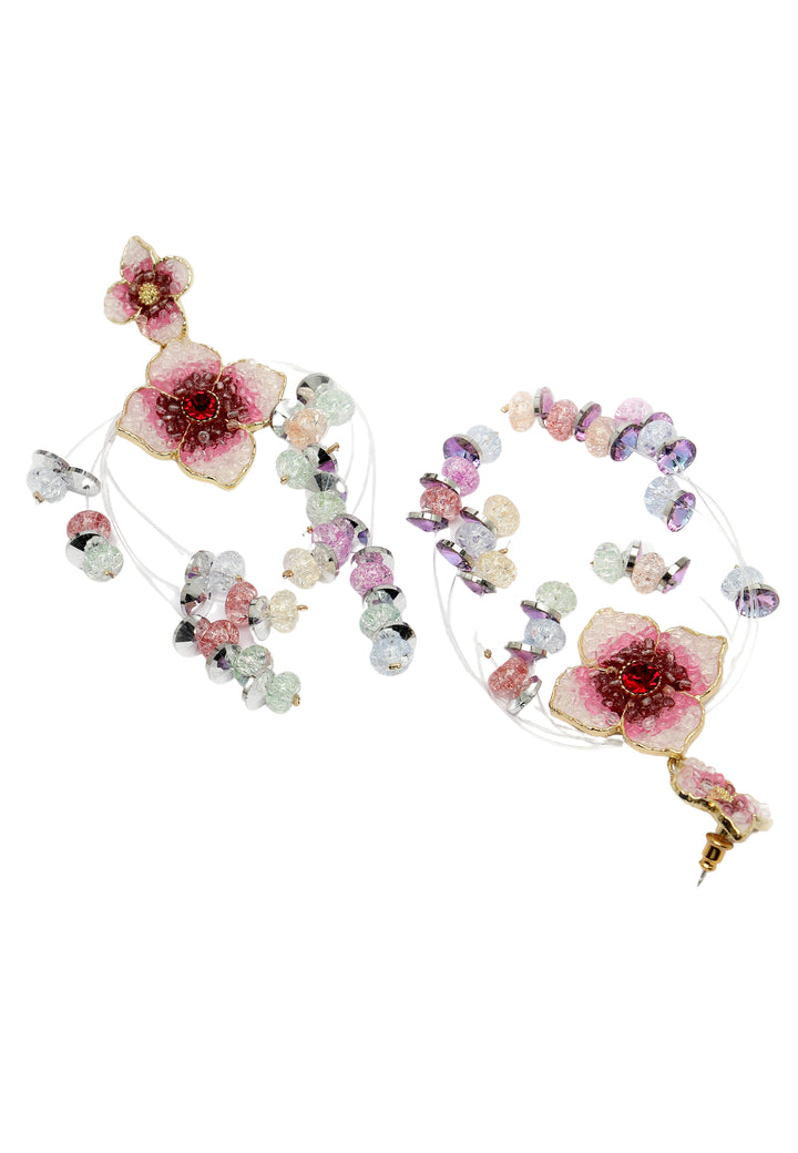 Maak kennis met de Double Boho Floral hangende oorbellen, een boeiende mix van bohemien charme en bloemige elegantie. Aan de bovenkant roepen delicate bloemen die doen denken aan wilde bloemen de vrijgevochten essentie op. Daaronder loopt een tweede laag van grotere bloemmotieven sierlijk over, waardoor beweging ontstaat en visuele interesse aan het ontwerp wordt toegevoegd. Of je ze nu draagt ​​met vloeiende maxi-jurken voor een muziekfestival of combineert met een jeans en een boho-blouse voor een casual look voor overdag, deze dubbele Boho Floral hangende oorbellen zullen zeker een statement maken.
