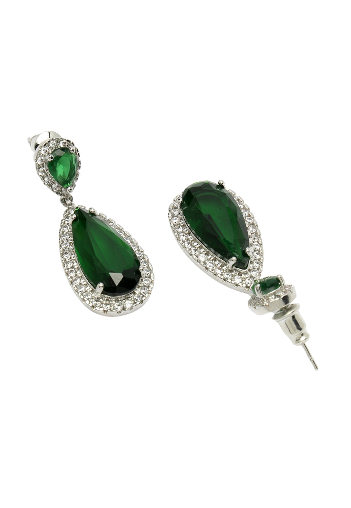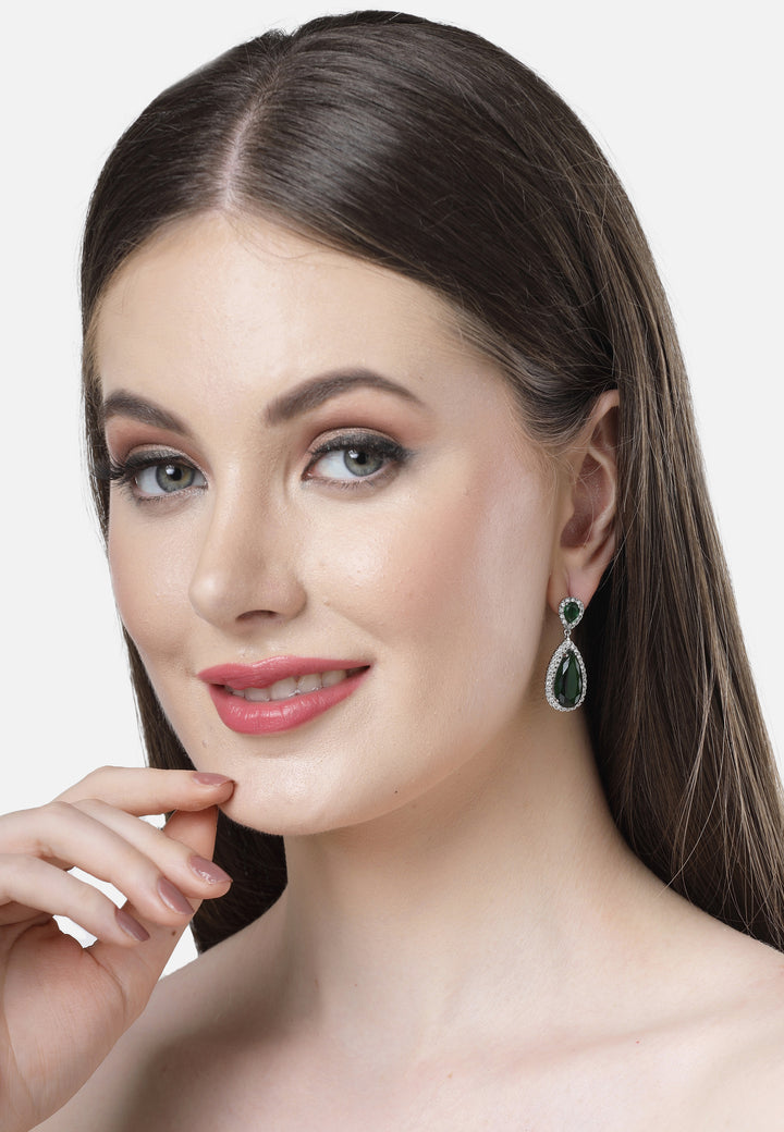 Omarm de betoverende charme van deze groene zirkonia-druppeloorbellen, versierd met zirkonia-stenen die vakkundig zijn gesneden en gepolijst voor een oogverblindende schittering. Deze oorbellen trekken gegarandeerd de aandacht en tillen elke outfit naar een hoger niveau. Hun aanpassingsvermogen zorgt voor een naadloze overgang van chic overdag naar glamour in de avond, waardoor ze een essentieel stuk zijn voor elke sieradencollectie. Verbeter uw mode-ensemble met deze prachtige paarse oorbellen met zirkonia's, een accessoire dat bij elke gelegenheid verfijning en elegantie uitstraalt.