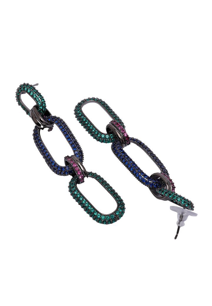 De Diva Dangle Drop Oval Hoops uit de Diva Collectie belichamen elegantie en hedendaagse stijl. Deze exquisite oorbellen zijn versierd met meerkleurige cubic zirconia stenen, die allemaal zijn geselecteerd op hun levendige kleur en schitterende glans. Ontworpen met een unieke combinatie van dangle- en hoopelementen, bieden deze oorbellen een moderne twist op een klassieke stijl. Of je je nu kleedt voor een speciale gelegenheid of een beetje sprankeling aan je dagelijkse look wilt toevoegen, de Diva Dangle Drop Oval Hoops zijn een perfecte keuze.
