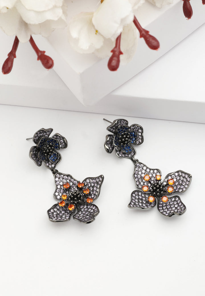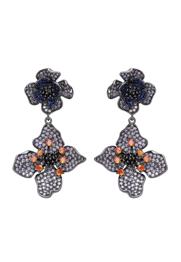 Diva Dwu-poziomowe Kwiatowe Kolczyki Wiszące