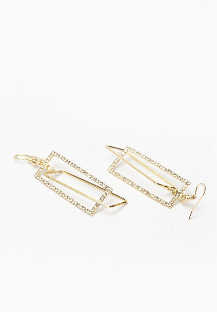 Les boucles d'oreilles géométriques sont réalisées en cristaux et plaquées de rhodium. La forme triangulaire et la superposition donnent à la soirée un look symétrique et élégant et juste ce qu'il faut d'éclat.