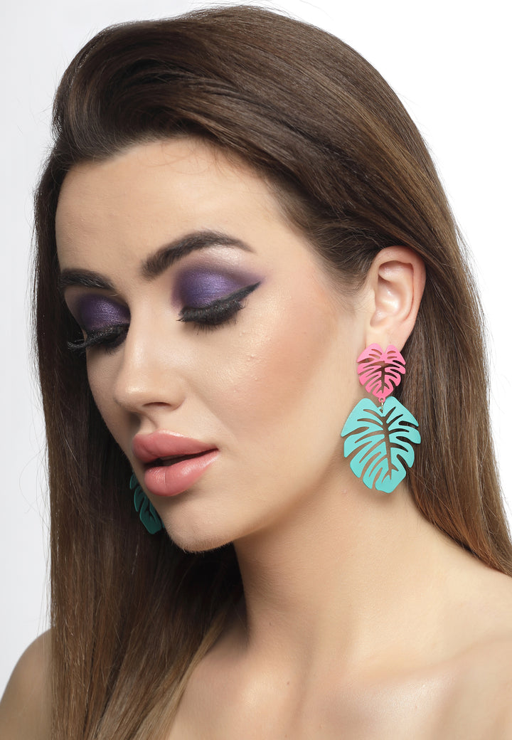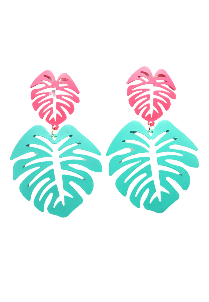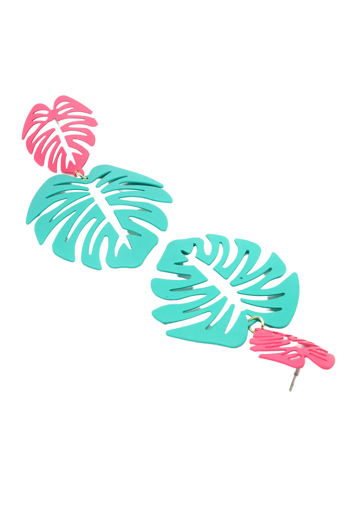 Boucles d'oreilles pendantes en forme de feuille de palmier verte