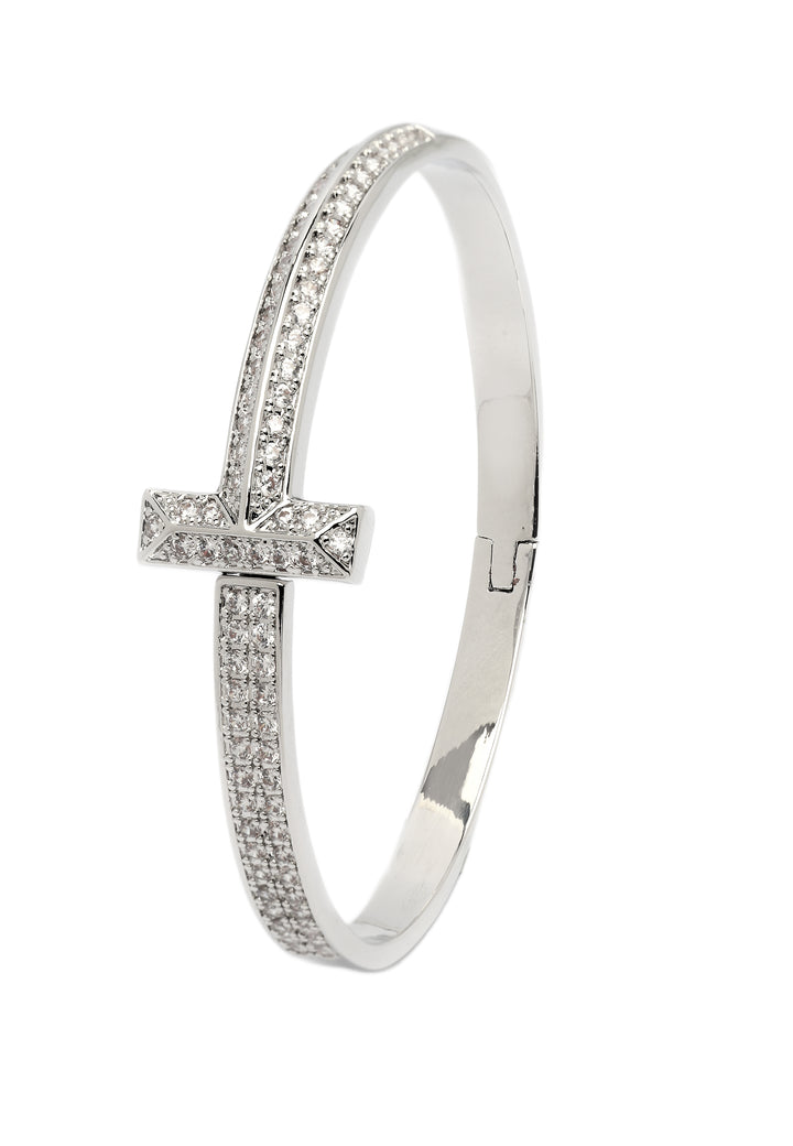 Le design minimaliste, mettant en avant un accent de barre épuré et un bracelet incrusté d'une gamme éblouissante de pierres scintillantes, crée un look frappant et moderne. C'est une pièce captivante qui dégage élégance et sophistication, parfaite pour ajouter une touche de luxe à n'importe quelle tenue.