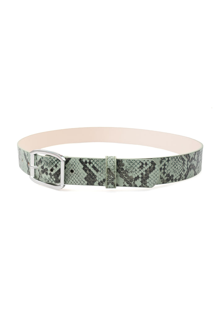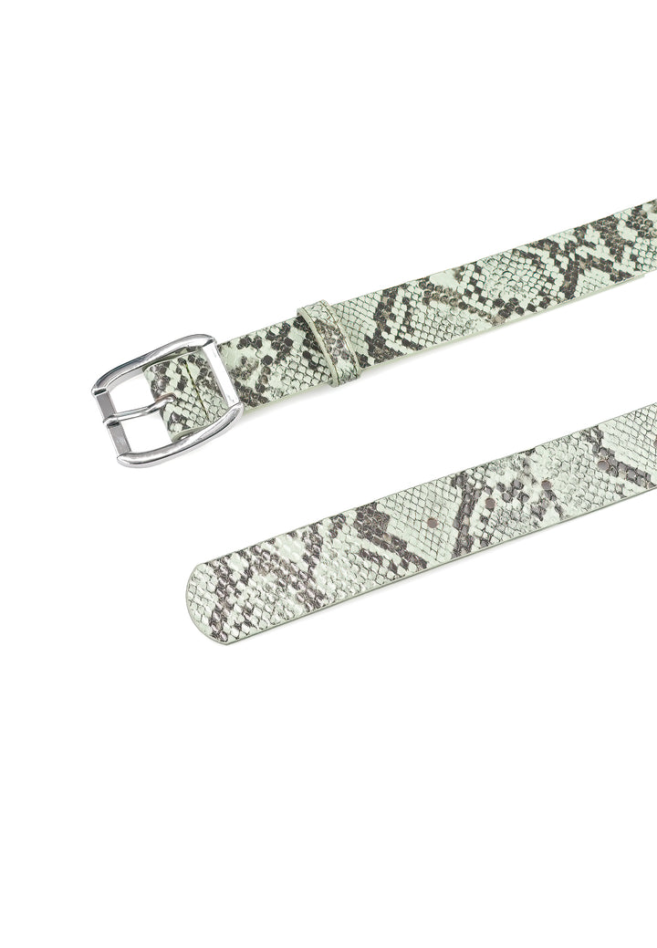 Cette ceinture à imprimé serpent vert exotique est un accessoire audacieux qui ajoute une touche d'élégance sauvage à toute tenue. La teinte verte vibrante, associée au motif complexe et texturé de l'imprimé serpent, dégage une ambiance à la fois audacieuse et luxueuse. La finition lisse lui confère un look moderne mais intemporel, en faisant un ajout polyvalent à votre garde-robe. Associez-la à un T-shirt blanc ou noir oversize simple et à un jean déchiré pour un style cool et décontracté.