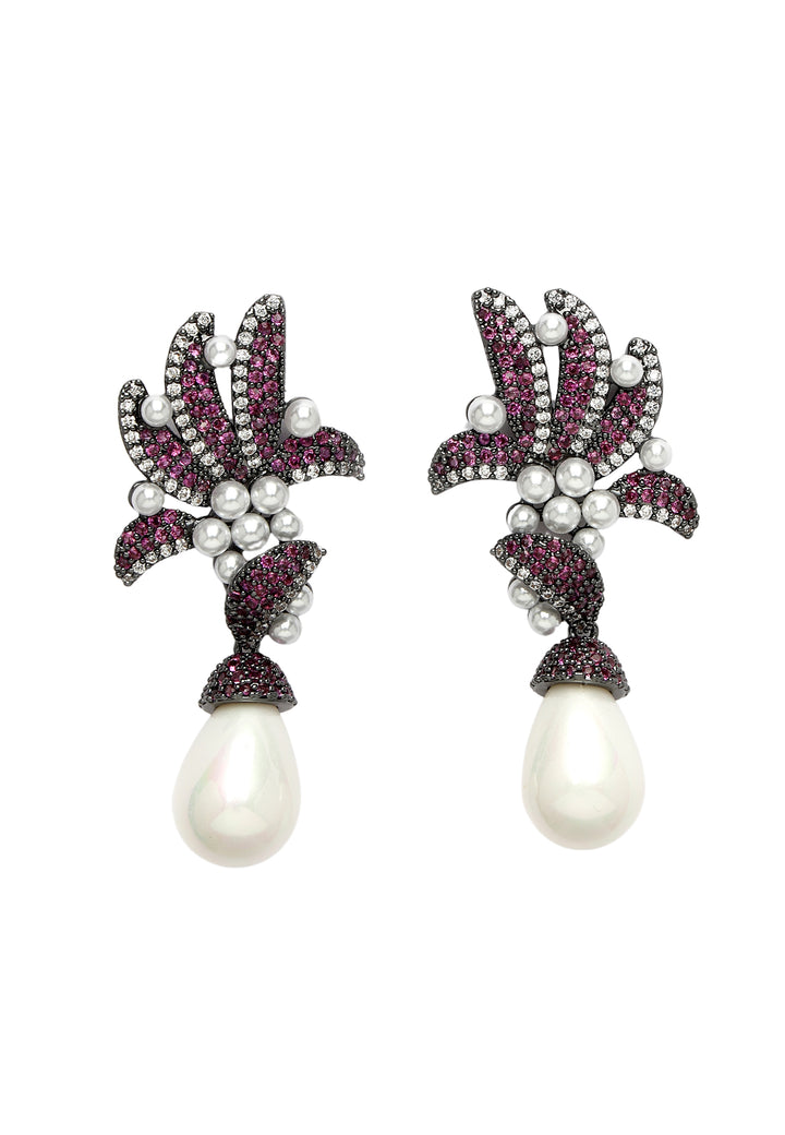 Rehaussez votre ensemble avec l'allure enchanteresse de ces boucles d'oreilles pendantes en zircone violette, ornées d'une perle brillante à l'extrémité. Au bas de chaque boucle d'oreille est suspendue une perle rayonnante, ajoutant une touche classique et raffinée au design. Adoptez leur beauté intemporelle et leur élégance sans effort, et laissez-les devenir un ajout précieux à votre collection de bijoux.