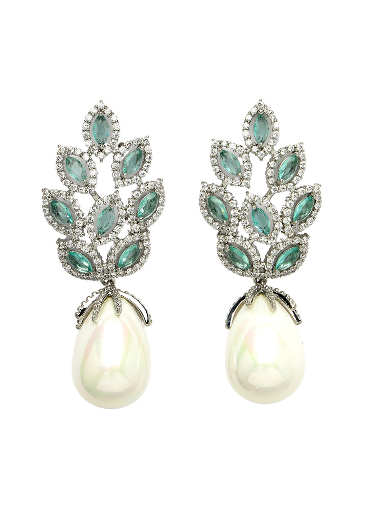 Boucles d'oreilles pendantes élégantes en zircone feuillu