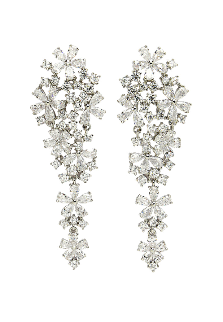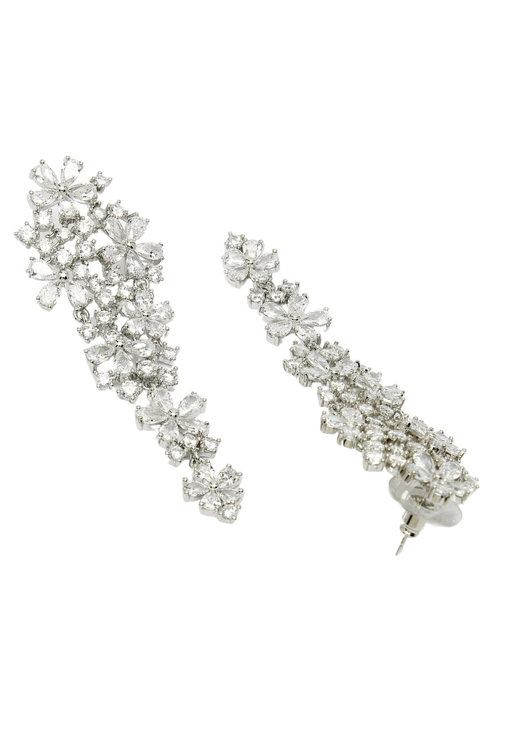 Le summum de l'élégance : les longues boucles d'oreilles florales d'un blanc exquis. Chaque boucle d'oreille présente un délicat motif floral avec des pétales finement détaillés, gracieusement suspendus pour créer un superbe effet pendant. Que vous assistiez à un événement formel ou que vous ajoutiez simplement une touche de glamour à votre tenue de tous les jours, ces boucles d'oreilles feront assurément sensation. Leur design allongé allonge le décolleté et attire l'attention sur le visage, créant un look flatteur et élégant.
