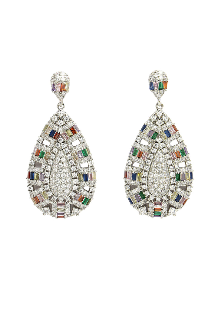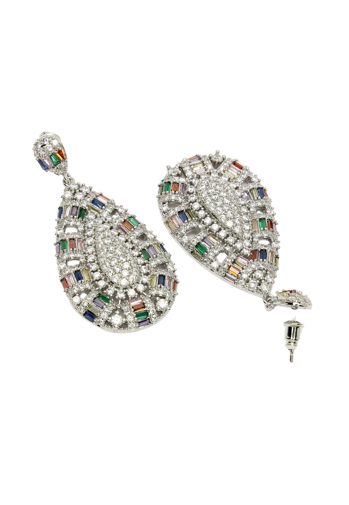Les boucles d'oreilles pendantes Royal Cubic Zirconia en argent avec des pierres multicolores au coin de la goutte sont un accessoire royal et enchanteur qui respire le glamour et la sophistication. La combinaison de l'élégante monture en argent et des pierres multicolores vibrantes crée un contraste saisissant, faisant de ces boucles d'oreilles une pièce maîtresse qui ne manquera pas de faire tourner les têtes. Parfaites pour les événements formels et les occasions spéciales, ces boucles d'oreilles ajoutent une touche d'élégance royale à n'importe quelle tenue. les boucles d'oreilles pendantes Royal Cubic Zirconia en argent avec des pierres multicolores vous feront certainement sentir comme une royauté.