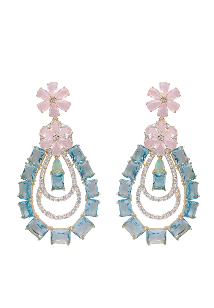 Les boucles d'oreilles pendantes de luxe Diva en zircon cubique multicolore, présentant une combinaison de vert et de rose, sont un exemple éblouissant d'un savoir-faire exquis et d'un design élégant. Ces boucles d'oreilles font partie de la collection Diva. Envisagez des tenues en couleurs unies qui s'harmonisent ou contrastent avec les teintes des boucles d'oreilles pour un look cohérent. Ces boucles d'oreilles, ornées de motifs de fleurs doubles en haut dans des teintes rose clair, et d'une série de pierres carrées menant à des gouttes ovales, offrent un mélange harmonieux de couleurs vives et de formes sophistiquées, en faisant un accessoire parfait pour des occasions spéciales et des événements glamour.