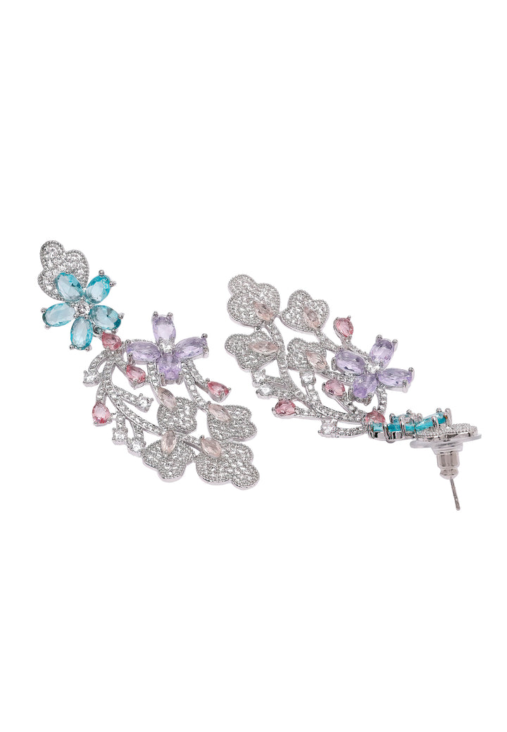 Les boucles d'oreilles pendantes Diva Floral de la Collection Diva, dans des teintes de violet, vert et argent de zircon cubique, sont un accessoire coloré et délicieux. Le design inspiré des fleurs ajoute un élément romantique et fantaisiste aux boucles d'oreilles, les rendant charmantes. Ces boucles d'oreilles sont polyvalentes et peuvent être portées pour diverses occasions, des événements formels aux sorties décontractées. Elles sont parfaites pour ajouter de la couleur et de la sophistication à votre tenue. Idéales pour ceux qui aiment les bijoux colorés.