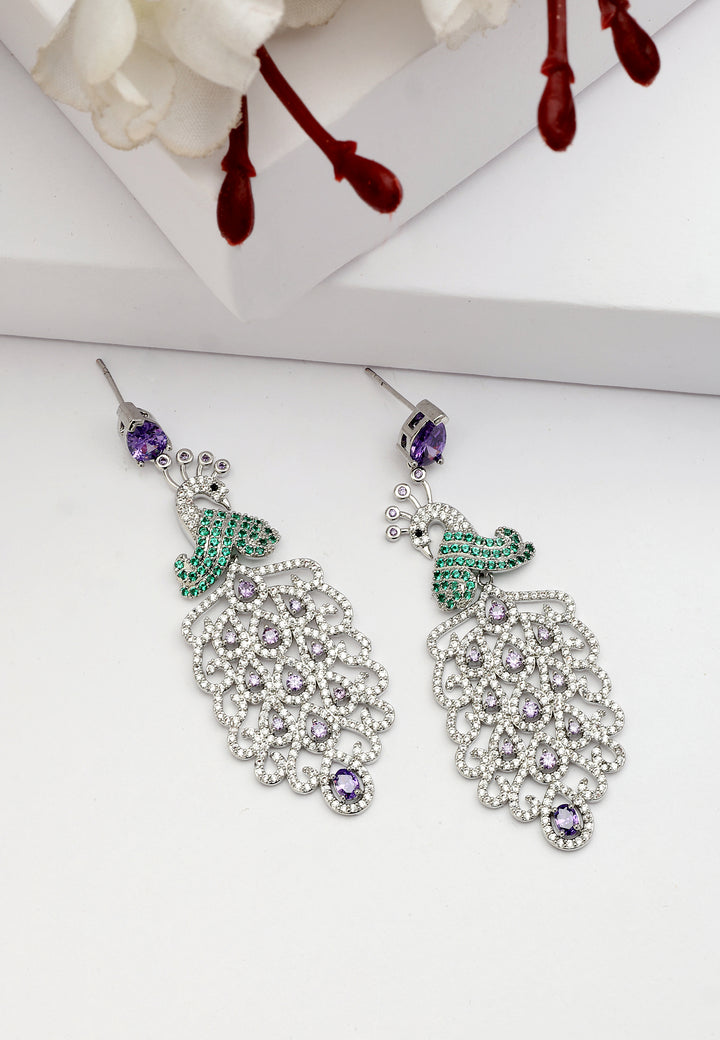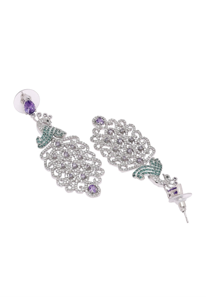Les boucles d'oreilles pendantes Beautiful Peacock de la collection Diva présentent des teintes vertes et bleues avec une goutte en zircon cubique argenté, un accessoire éblouissant. Ces boucles d'oreilles présentent probablement un design inspiré des plumes de paon, connues pour leurs couleurs vives et leurs motifs complexes. La partie en goutte de plume est en argent, ajoutant une touche d'élégance. Portez ces boucles d'oreilles avec un simple blouse ou une robe pour ajouter une touche de couleur et d'élégance à votre tenue quotidienne. Le design inspiré du paon en fait un accessoire frappant tant pour le jour que pour la nuit. Ces boucles d'oreilles sont sûres d'être une pièce maîtresse dans toute collection de bijoux.