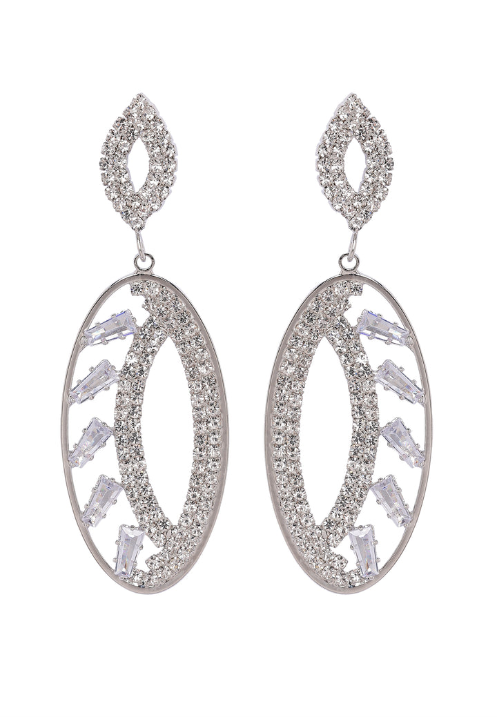 Ces boucles d'oreilles sont un mélange captivant de style moderne et classique. Le design ovale unique, incrusté d'une gamme éblouissante de pierres scintillantes, crée un look à la fois élégant et accrocheur. C'est une pièce maîtresse qui exhale sophistication et charme, parfaite pour ajouter une touche de glamour à n'importe quelle tenue.
