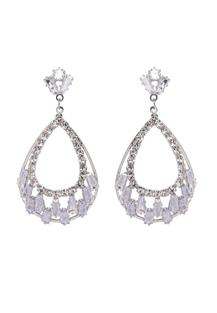 Ces boucles d'oreilles éblouissantes présentent un magnifique design en forme de goutte d'eau incrusté d'une cascade de pierres scintillantes. C'est une pièce maîtresse qui dégage élégance et charme.