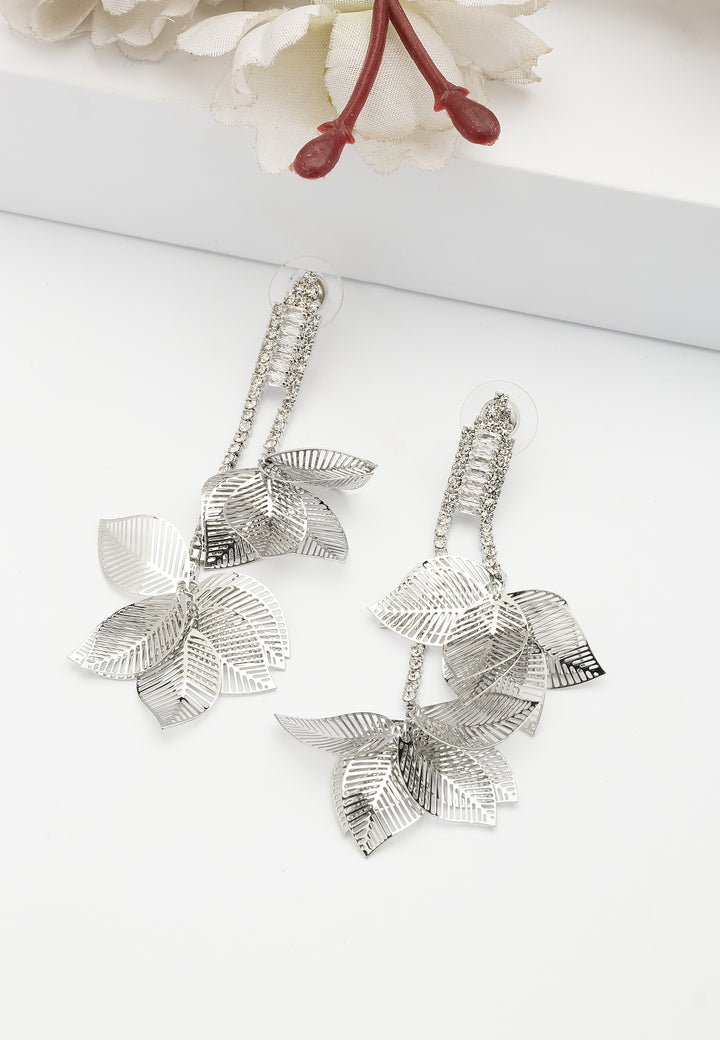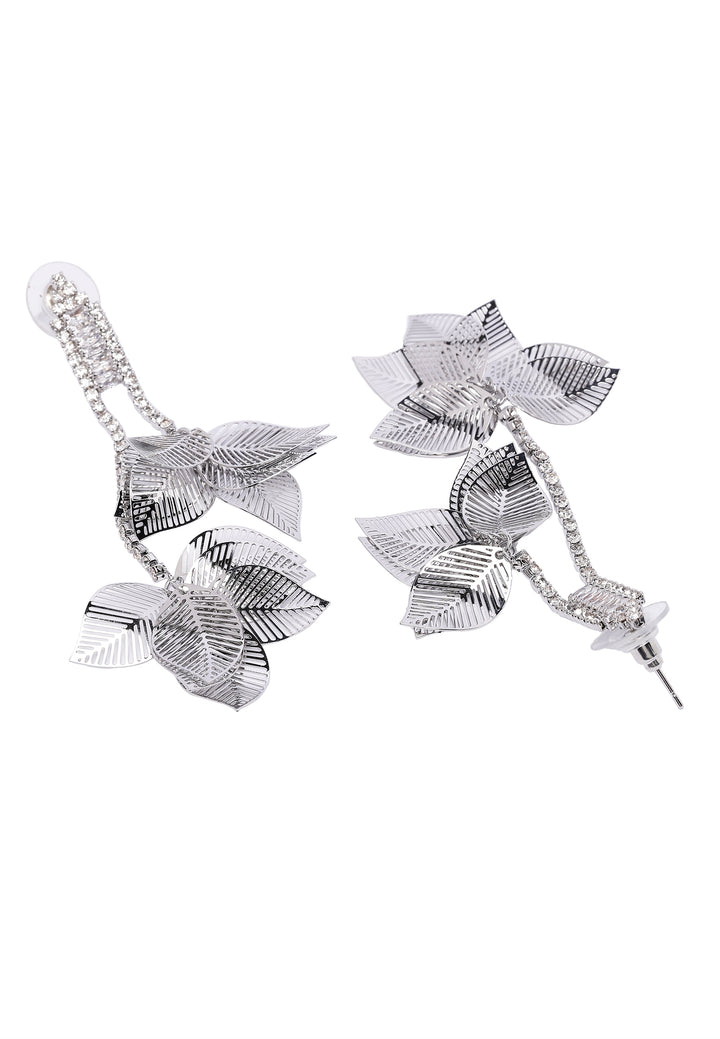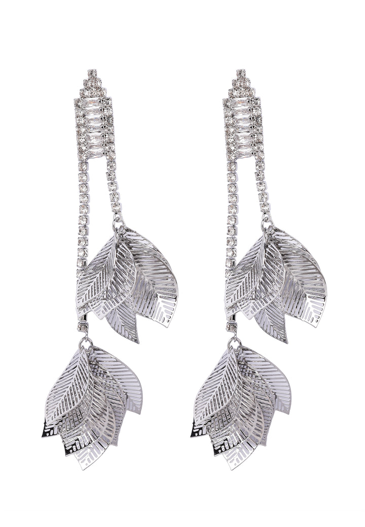 Des feuilles gracieuses, embellies de cristaux scintillants, s'écoulent élégamment pour créer une apparence fascinante et envoûtante. Ces boucles d'oreilles font une déclaration audacieuse, rayonnant de sophistication et de charme, et sont parfaites pour apporter une touche de beauté inspirée de la nature à n'importe quel look.