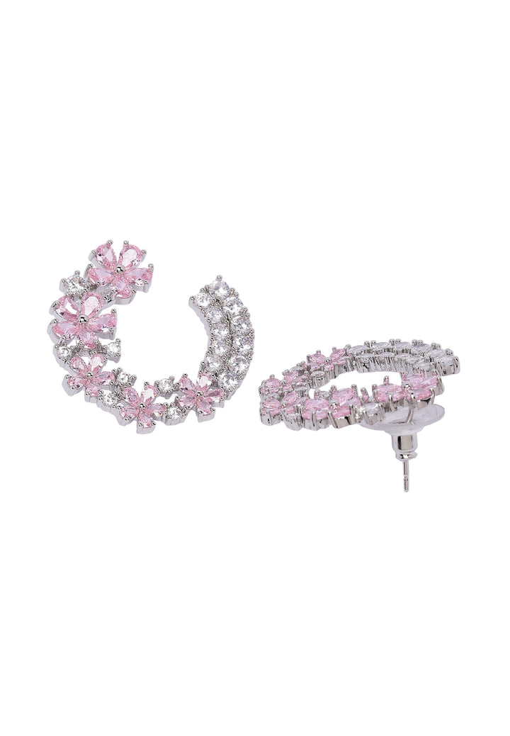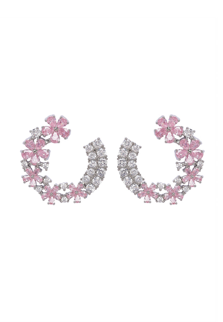 De douces fleurs roses, ornées de pierres scintillantes, entourent gracieusement le cerceau, créant un design amusant et captivant. Ces boucles d'oreilles font une déclaration audacieuse, rayonnant de charme et d'élégance, et sont idéales pour ajouter une touche de fantaisie et de raffinement à n'importe quel look.