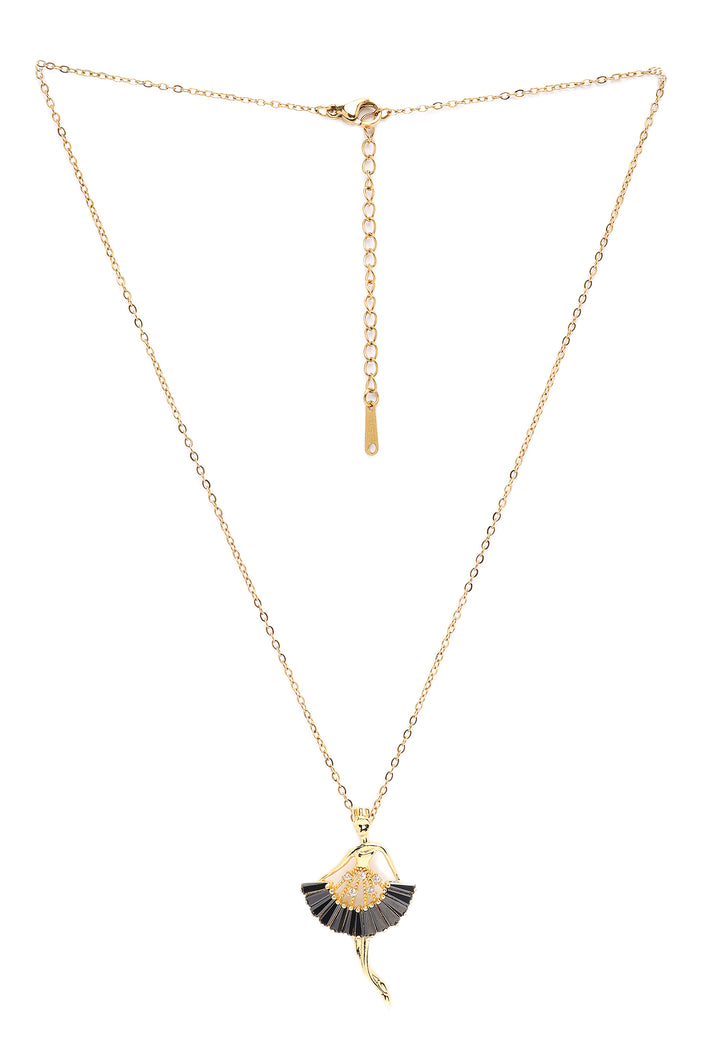 Un hommage époustouflant à l'élégance de la danse, ce pendentif met en valeur une ballerine gracieuse ornée d'un tutu en émail noir fluide. La figure dorée irradie charme et art, suspendue délicatement à une chaîne assortie en ton or. Parfait pour les danseurs, les amateurs d'art ou quiconque apprécie la beauté du mouvement, cette pièce ajoute une touche unique et artistique à votre collection de bijoux.