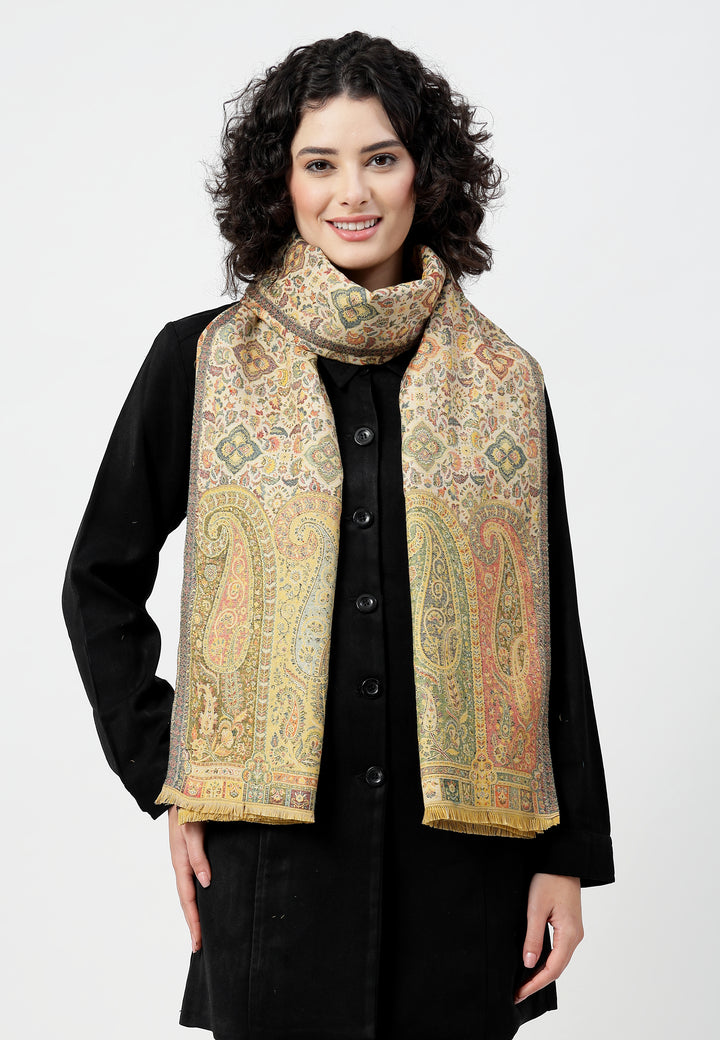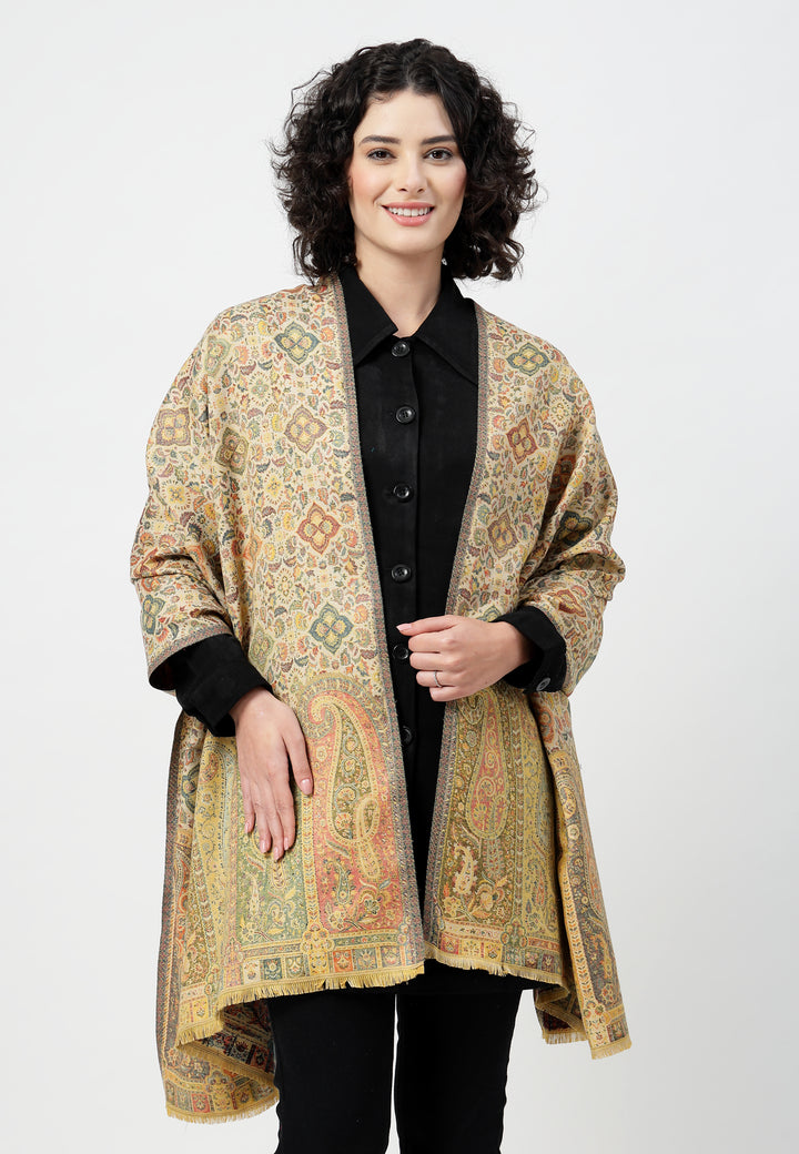 Beaux designs Jamawar, sur un doux tissu en fausse pashmina et des œuvres d'art traditionnelles. Populaire depuis l'ère moghole. Ce châle traditionnel de style kashmiri a un design intriqué et une qualité.