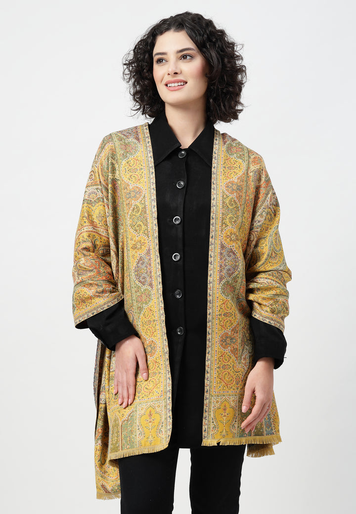 Beaux designs Jamawar, sur un doux tissu en fausse pashmina et des œuvres d'art traditionnelles. Populaire depuis l'ère moghole. Ce châle traditionnel de style kashmiri a un design intriqué et une qualité.