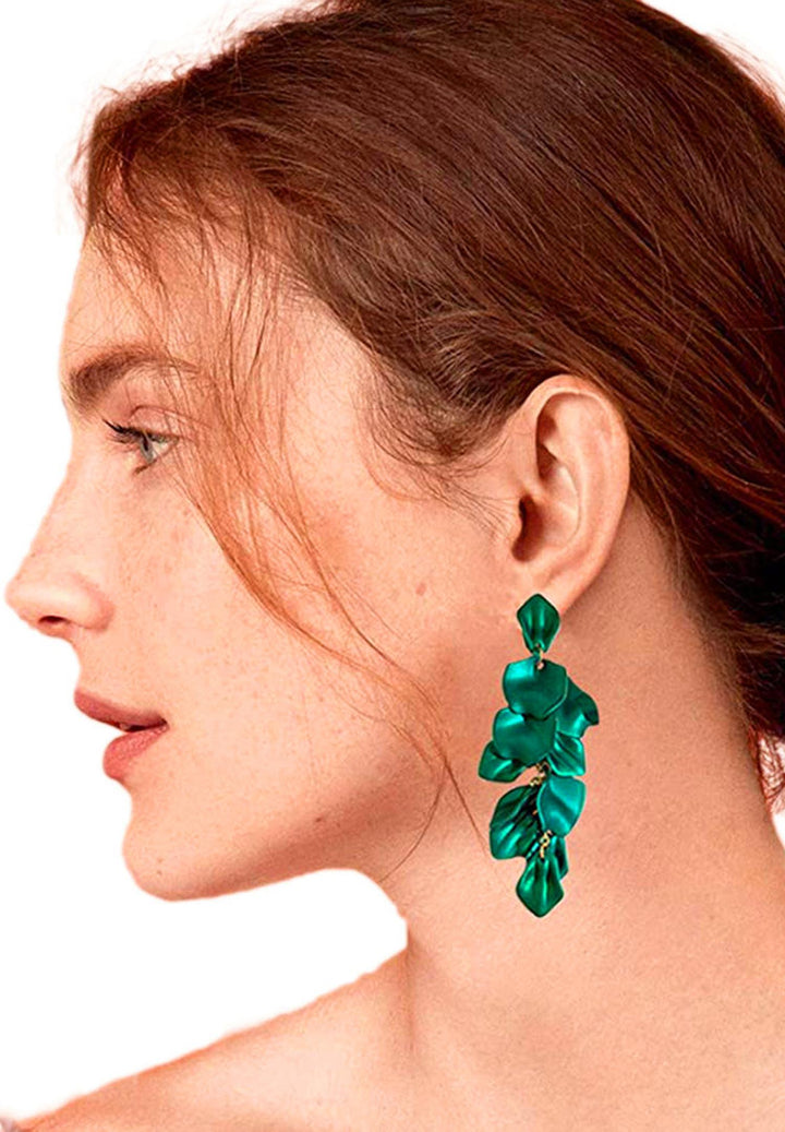 Les boucles d'oreilles présentent un design unique et complexe qui ressemble à la forme gracieuse d'une feuille. La longue longueur de ces boucles d'oreilles ajoute une touche dramatique et sophistiquée à votre look. Si vous portez une tenue à imprimés floraux, les boucles d'oreilles à feuilles vertes peuvent rehausser le thème naturel et créer une connexion harmonieuse. Choisissez des boucles d'oreilles qui correspondent à la nuance de vert du motif floral ou optez pour une teinte complémentaire pour ajouter de la profondeur et un intérêt visuel.