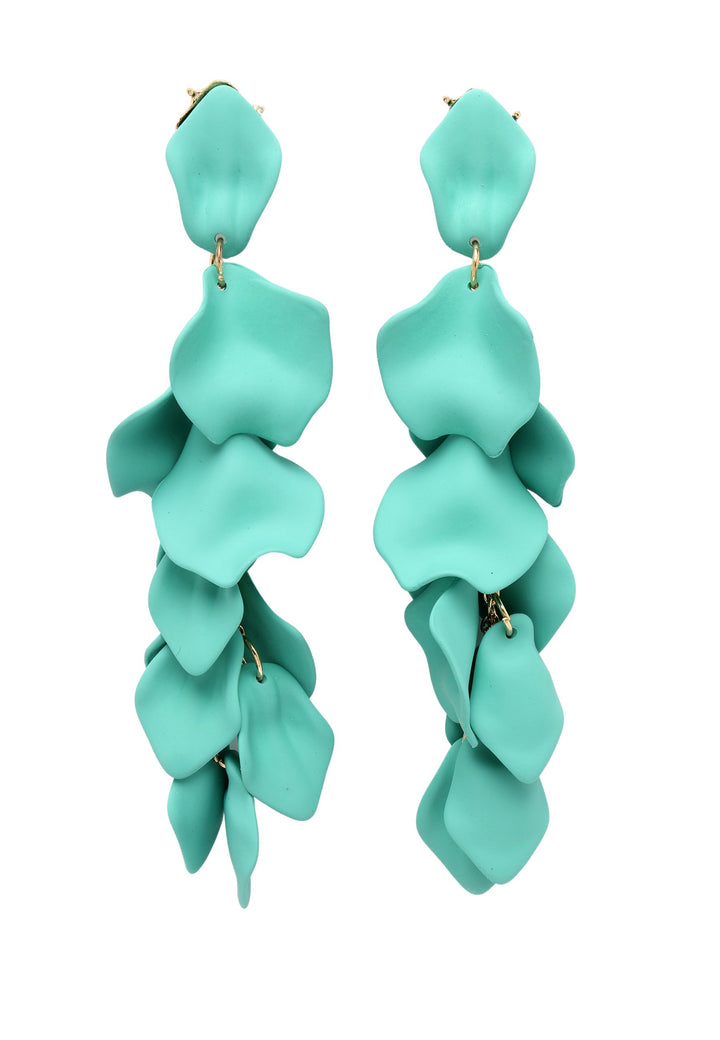 Dessa eleganta turkosblå kronbladsformade Western Dangler-örhängen i akryl är designade för att lägga till en touch av elegans till din ensemble med sin delikata kronbladsform och klockliknande dingeldesign. Den turkosblå färgen på örhängena är subtil men ändå slående, vilket gör dem till ett värdefullt tillskott till din smyckessamling. Du kan bära dessa örhängen med en flytande maxiklänning, en jeansjacka och sandaler för en chic boho-look.