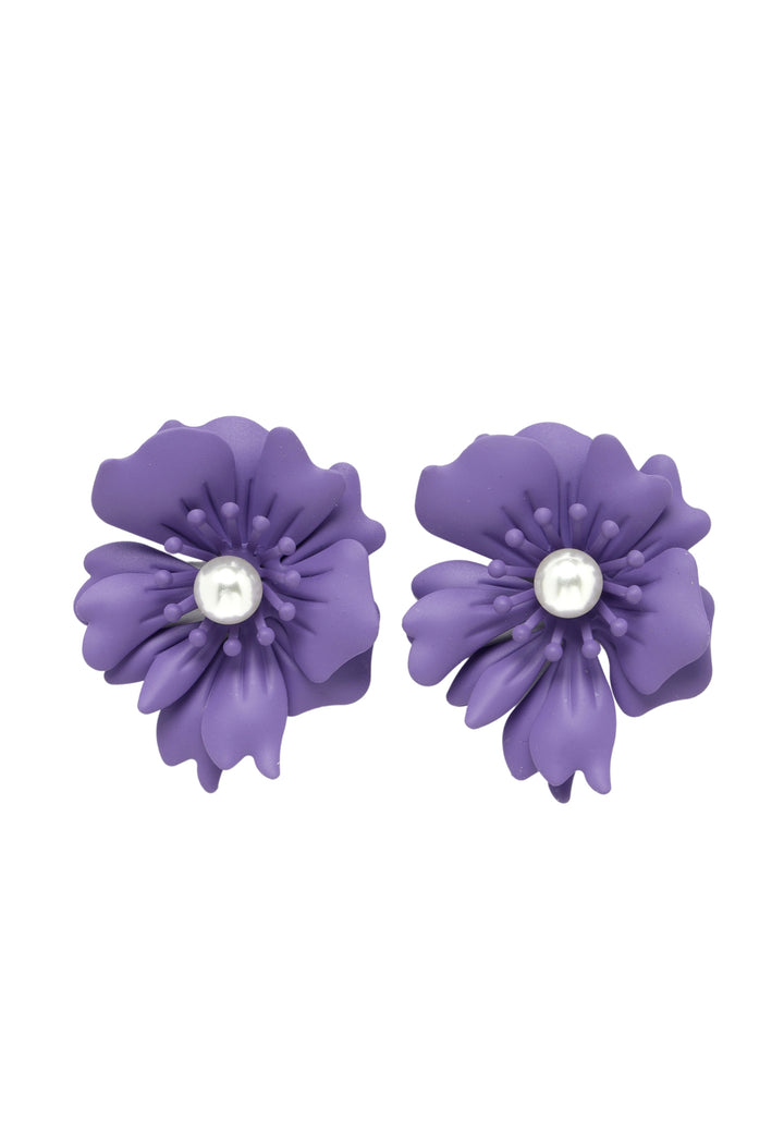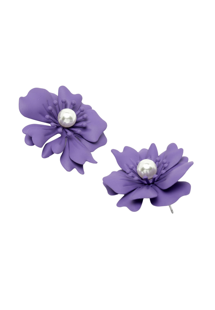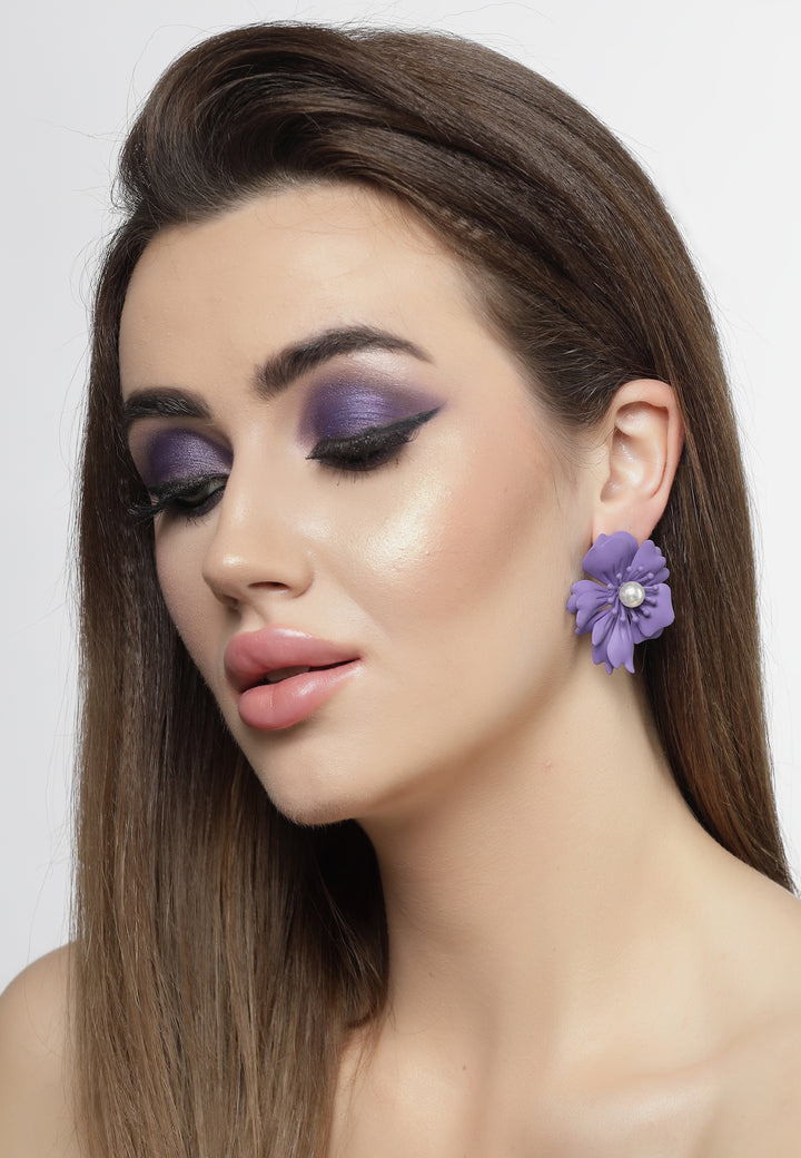 Violettblommiga pärlorhängen är ett härligt, stilrent föremål som ger elegans till vilken outfit som helst. Med en lysande violett bakgrund har dessa örhängen en delikat blommig design med ett pärlkluster i mitten. Örhängena är gjorda med en stiftstil som sitter bekvämt på dina örsnibbar, vilket skapar en subtil men ändå stilig look. Den violetta färgen på örhängena kommer att komplettera en rad outfits, från neutrala toner till ljusare färger, vilket ger en nyans av färg och intresse till din övergripande look.